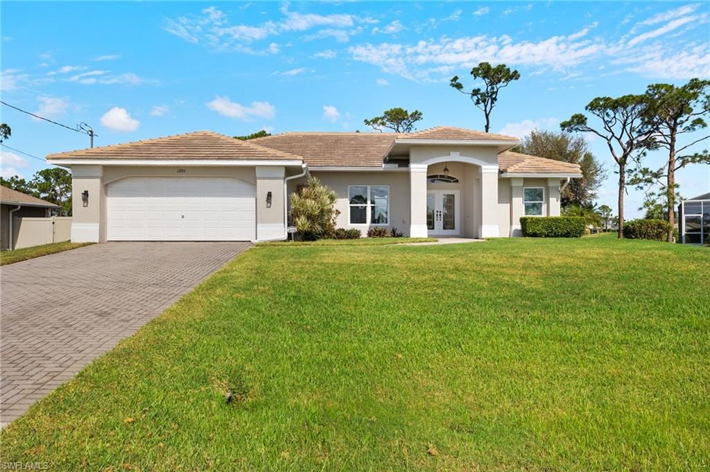 Quiet nestled in a nice Cape Coral location, this stunning single family home is a true gem with direct access to the beautiful golf course of Palmetto Pine Country Club. Impeccably maintained and move-in ready, this residence is the perfect blend of comfort and elegance. Upon entering, you will be captivated by the bright and inviting floor plan with three spacious bedrooms and a grand entrance that leads directly to the patio and oversized pool area. Imagine relaxing in your own backyard oasis with breathtaking views of the lush golf course.With its perfect combination of charm and sophistication, this home is truly the perfect oasis you've always dreamed of.The open design includes a large, inviting living room that seamlessly connects to the dining area and a modern kitchen, making it ideal for entertaining family and friends. 2 bathrooms with tub and 1 additional shower, generous walk-in closets in each bedroom, master bedroom with 2 separate closets. Brand new hurricane impact windows, lots of open space and direct access to the pool deck. The oversized pool invites you to relax and enjoy. From there you have direct access to the golf course! Don't miss your chance to own this exceptional property in this location, directly on the PALMETTO PINE COUNTRY CLUB Golf Course!